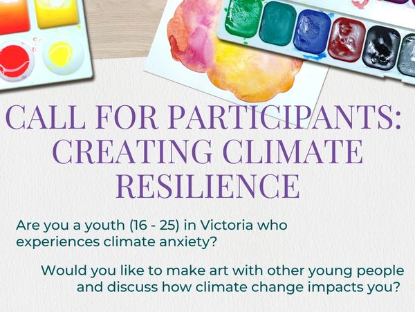Creating Climate Resilience aims to increase people's emotional resilience in order to help them sustain their engagement in climate action for the long haul. We do this through knowledge mobilization, community connections and arts-based climate emotions workshops. We focus primarily on youth (16 - 30) but offer workshops for people of a variety of ages, backgrounds and lived experiences.